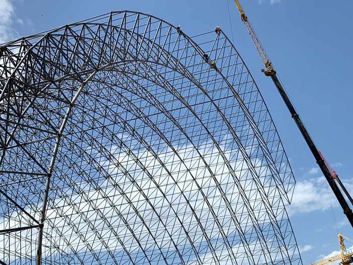 (2)网架加工前应对现场尺寸进行复测,确认无误后方可进行加工、安装;网架制作、运输、安装应遵守《空间网格结构技术规程》JGJ7-2010、《钢网架渭南螺栓球节点》JG/T 10-2009、《钢网架渭南螺栓球节点用高强度螺栓》 GB/T 16939-2016、《渭南钢结构渭南工程渭南施工规范》 GB50755-2012、《渭南钢结构渭南工程施工质量验收标准》 GB50205-2020。